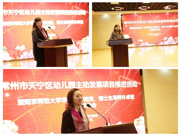 1月9日,天宁区教育文体局在解放路小学报告厅举行了“天宁区幼儿园主动发展项目推进活动”。本次活动以“幼儿园创意戏剧游戏课程的实践研究”为主题,由南京师范大学国家重点学科学前教育教授、博士生导师许卓娅进行了全程浸入式指导。常州市教育局基教处吴琴芳主任科员、市教育科学研究院庄春梅老师、区教育文体局教育科陈青副科长、区幼儿教育研究中心施亚芳主任亲临现场参与了活动,活动由区教育文体局陈青副科长主持。本次“戏剧研讨盛宴”还吸引了天宁区、新北区、武进区200多名园长、副园长、骨干教师们前来观摩,创意戏剧研究让幼教人热情洋溢,活动现场充满了浓浓的春意!