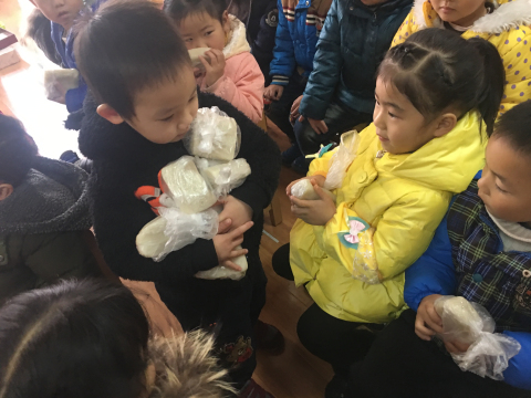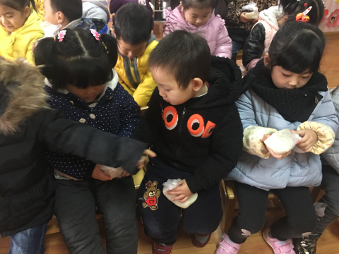 在喜庆的音乐伴随下,小三班的孩子开始品尝年糕,孩子们拿着热乎乎的糕花,蘸了白糖蘸红糖,吃了一块又一块。通过此次活动,孩子们充分感受了传统民俗浓浓的年味儿,感受了新年的欢乐和喜悦。对孩子进行传统文化教育,让孩子感受“接地气“的年味体验活动,是幼儿整体教育体系中不可缺失的一部分,此次活动把感受传统浓情的机会还给孩子,让孩子真正地体验到活动的价值。