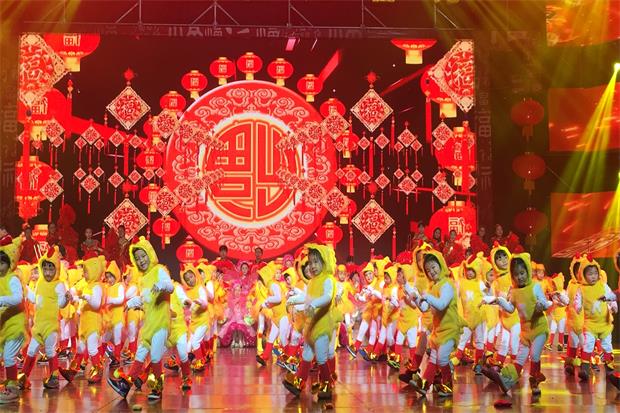 在欢快的音乐中,100只活泼可爱的“小小鸡”跃上舞台。伴随着《金鸡报春》的热闹旋律快乐舞动,给全市人民送上新春祝福。每一个笑颜,每一次挥手,每一声问好,都尽显着东幼娃阳光自信的风貌。在场观众啧啧称叹:孩子们太可爱了,真能干!真棒!