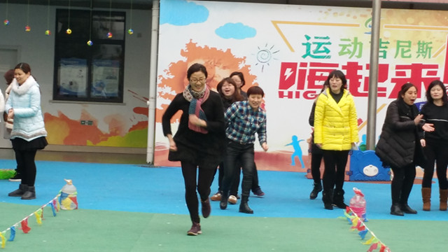 运动会分集体和个人项目,为了集体的荣誉,大家都力争体现出最佳的状态。集体项目如:接力运球和三人四足,而个人项目则包括圈内踢毽、定位投飞镖等。老师们本着“友谊第一,比赛第二”的原则,在比赛中全力以赴,充分展现了幼儿教师团结拼搏、奋发向上的精神风貌,赛出了风格、赛出了欢乐。别看平时斯斯文文、秀气文雅的女教师们,在比赛中有的动如脱兔,有的小步快跑,有的穿梭鱼跃,场上只听得喝彩声声,加油声、呐喊声响彻一片,驱散了冬日的寒冷。