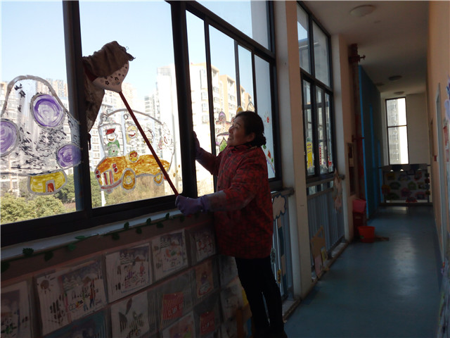 新学期就要开始了,彩虹幼儿园全体教职工为了给幼儿营造一个干净、整洁、舒适、安全的生活和游戏环境。从“细”字着手,精心安排紧锣密鼓的做开学前各项准备。老师们紧张而忙碌的配合协作,进行着教室环境布置更换工作。每个教室也根据幼儿园特色和孩子年龄特点,做相应的主题更换。保育员阿姨也忙开了,将教室玩具、橱柜、桌椅等进行消毒,对园所地面上的窗户进行清洁,对废旧物品进行处理。