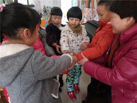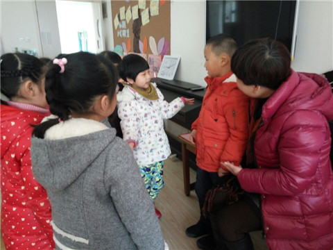 孩子们一个个热情地向九九小朋友介绍着自己,并欢迎九九小朋友来到我们大一班,成为我们的好朋友。听! “九九,你好,我是杨乐涵,很高兴见到你,我们现在就是朋友了。” “九九你好,我是张子阳,我也是上学期新来的,我们大一班可好了,你不用害怕,我们现在就是朋友了,你还会有很多得新朋友的。”“九九,你好,我是俞星伊,我们做朋友好吗?”……九九看着一个个热情地小朋友向他问好,原本有些胆怯而尴尬的小脸变得快乐起来,鼓起勇气说了声:“谢谢小朋友,我好开心。”