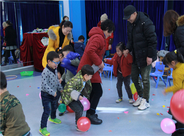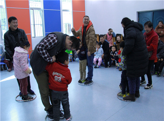 在喜庆的音乐声中,“金猴起舞”拉开帷幕,在小朋友们齐声欢唱“新年好”的乐声中,老师向孩子们送上了温馨的新学期祝福。接着孩子们与家长一起,开启了一次快乐而有趣的亲子互动之旅:吹气球、踩气球、贴五官、抢占圈、传幸运环……