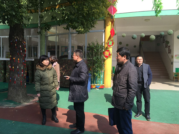 2017年2月14日中午时分,天宁区教育文体局薛文兴副局长、计财科吴佳伟科长等一行人在茶山中心幼儿园顾副园长陪同下对茶山幼开学工作进行检查。