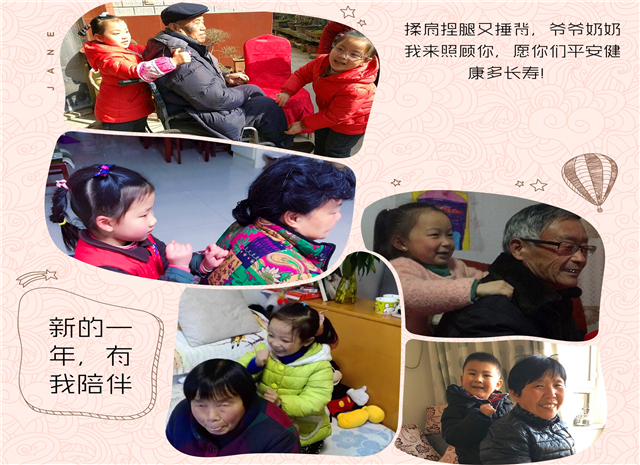“老吾老,以及人之老”,敬老爱老是中华民族的传统美德,是中华民族强大凝聚力与亲和力的具体体现,夕阳的幸福需要有朝阳的回报。小班的孩子们为爷爷奶奶敲肩捶背,中班的孩子端茶倒水讲故事,大班的孩子当起了小大人,为爷爷奶奶夹菜添饭,倒水洗脚样样周到。孩子们用自己的行动诚挚地表达了一颗感恩的心,在长辈们的心间漾出点点温暖的涟漪,用陪伴的花火照亮了新的一年。
