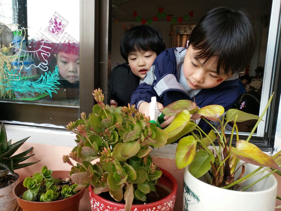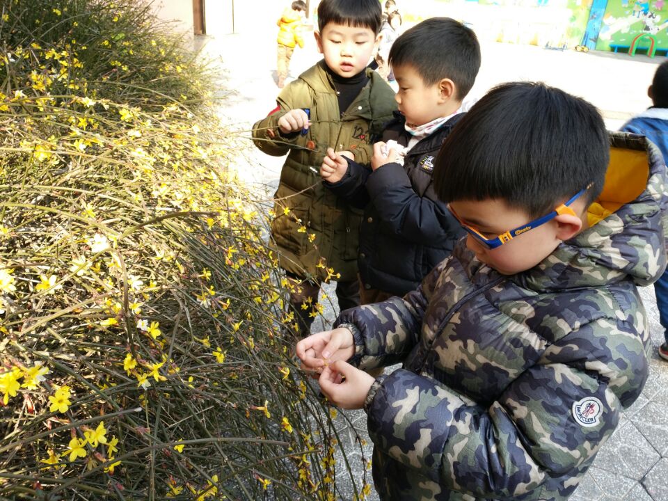 孩子们在老师的带领下运用自己的感官去看看、说说、听听、闻闻、摸摸寻找春天,他们发现了枝条上长出了嫩芽,树木吐露新芽,小草从泥土里钻了出来,黄黄的迎春花报告了春天的信息,绽开了笑脸,小朋友置身于春意萌发的校园中,异常的开心与兴奋,惊奇地叫道:“老师你看,迎春花开了,枝条发芽了,我们的长春花有花宝宝了……”老师们也不失时机地让幼儿数花瓣、比花瓣、找嫩芽、认植物、浇浇水等。找春天、感受春天的的气息,让孩子们在一日活动中学到了知识,在自己周围了解了春天带给自己的美好。还学了一首好听的儿歌,草地长出绿头发,我用小脚梳梳它。小草乐得咯咯笑,亲亲我的小脚丫。