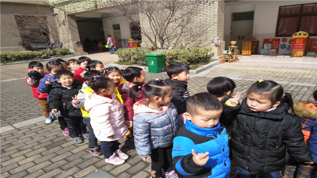 “要去散步了,孩子们,一个跟好一个一定要排好,不能掉队,汽车要开了……”小朋友排好队,老师手握方向盘做成一辆汽车的样子,快速地挨着孩子从排头开到排尾,遇到站在队伍外面的孩子就停下来提醒他:“快快快,汽车开来啦,快躲进队伍里去哦!”这个小朋友听了赶紧站进队伍里去。这样队伍就很整齐了。瞧!小朋友排好队伍出发散步喽! 幼儿园重视餐后活动,我们不仅带领先吃完饭的幼儿散步,而且对于吃饭慢的幼儿,不急于让他们睡觉,让他们看会儿书或将相邻几个班吃饭慢的幼儿组织起来,带领他们到操场上散散步,这样便于吃的食物得到消化,午睡时就不会发生溢饭现象,而且也促进了幼儿身体的正常发育。