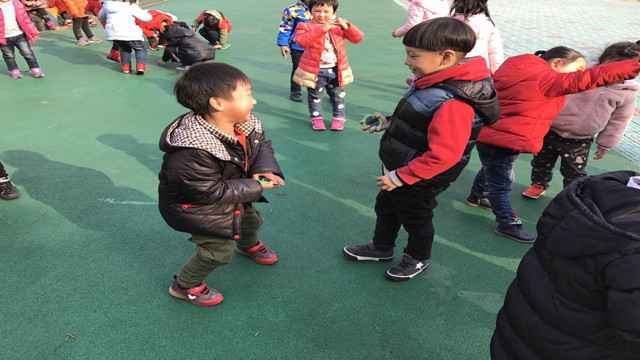 2017年2月16日下午,雨过天晴,茶山中心幼儿园的上空艳阳高照。朵朵二班孩子们又能如期来彩色道板场上开展体育“追太阳”活动。