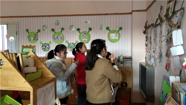 老师们分别从主题环境、区域环境、家长园地以及自然角的创设进行观摩评比。此次环境创设中的一大亮点是:每个班级都结合彩幼教学特色——绘本教学为基础,将不同的绘本元素融入到整体环境中,设计独具匠心、个性鲜明,可谓是班班有特色,处处有新意。
