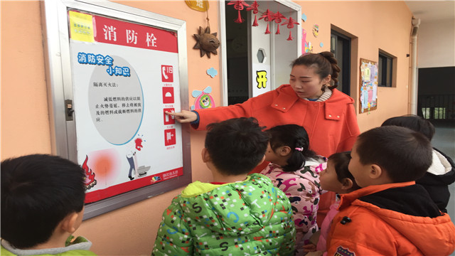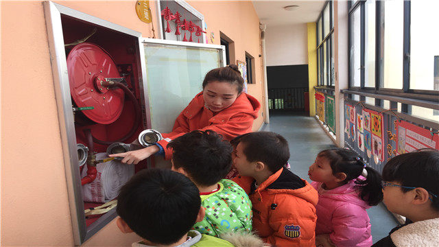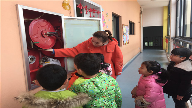 课堂上,老师以图文结合方式为小朋友讲解了基本的消防安全知识,并结合幼儿园特点着重讲解了火灾初起的扑救方法、怎样报警求救、发生火灾后如何逃生自救等消防知识。随后,还带领小朋友参观幼儿园的一些消防设施。