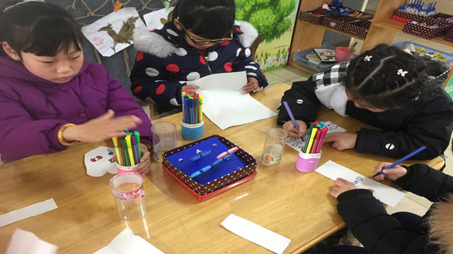 宝贝们充分发挥了想象力和创造力,同时也没忘记向老师和好伙伴相互请教。孩子们创作出来很多漂亮的作品,有小花朵的、有爱心的、有长方形的等。