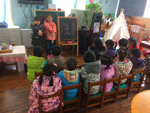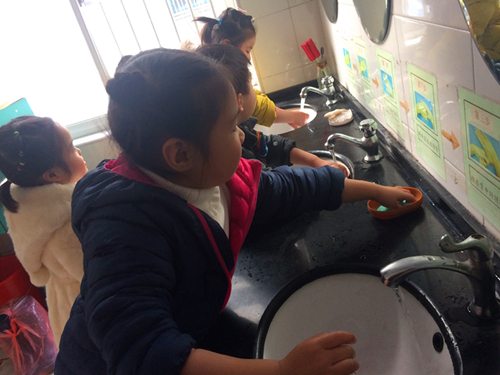 孩子们喜欢用手去触摸去探索,但是这也让细菌有了可趁之机。孩子们不经意间就把细菌带到了身上,在幼儿园老师也会督促孩子们洗手,但是孩子们洗手通常草草了事,并没有把小手洗的很干净。老师们想了各种办法,通过儿歌、卡通洗手布置图,洗手大比拼等各种活动引导孩子们正确洗手。手心搓搓、手背搓搓、手指缝里搓搓,一二三,小手甩甩干。孩子们唱着儿歌,洗手更加的仔细了。