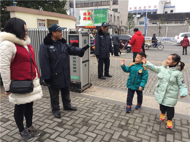 这支队伍的成员都是家长们自愿报名,采取轮流值班制,值班的家长在上午7:50—8:45、下午16:40—17:00,他们的职责是:晨间来园、放学离园时刷卡的管理工作,规范持卡入园的管理,杜绝社会不法分子混入园内,造成幼儿的安全隐患。在接送幼儿的高峰期,需要配合保安工作,规范接送车辆的停放秩序,以免因车辆乱停乱放,造成园门口交通堵塞。做好护送幼儿来园、维持校园秩序,保卫校园安全。共同确保每一个孩子高高兴兴来园,平平安安离园。