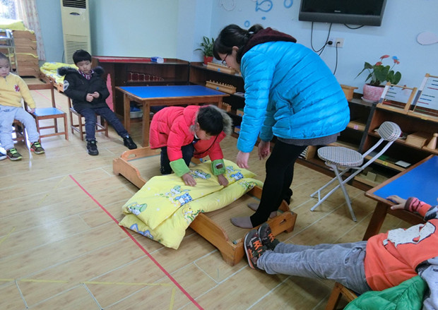 著名教育家陈鹤琴先生提出“凡是儿童自己能做的,应当让他自己做”的教育原则。但是现在,随着独生孩子家庭的增多,家庭条件的日益优越,家中几个大人围着一个孩子,所有的事情家长都会代办,包办,导致孩子依赖性强,到了一定年龄一些可以自己做的事情却不会或者不愿做。为了培养幼儿自我服务的意识与积极性,我班开展了学叠被子,鼓励幼儿自己叠被子。