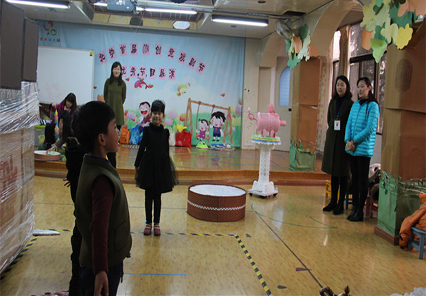 随后,朱园长还观看了我园将赴上海参加比赛的OM节目表演,朱园长对于手工制作的舞台道具、童趣十足的戏剧服装、惟妙惟肖的稚趣表演给予了高度的评价,同时也提出了宝贵的意见。朱园长强调OM表演不是简单的背故事、念对白,也不是热热闹闹的歌舞表演。正是由于OM特色活动符合儿童心理发展的特征,因此极容易打动幼儿,让幼儿不自觉地沉浸其中,这就需要老师们在具体的实践中能根据幼儿身心发展的需要,引导幼儿根据剧本的情节和角色设计进行改编活动,从而在OM表演过程中促进幼儿身心健康和谐发展。