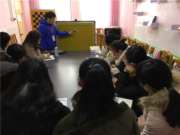 “护天性、扬人性、育灵性、展个性”是红梅中心幼儿园独特的办园理念。十多年来,幼儿园致力于对棋文化特色活动的探索和研究,棋类特色活动得到了同行和家长的认可与支持。为了能让红幼每一位教师都能参与到棋类活动的研究中来,2017年2月21日,红梅中心幼儿园教师三棋培训活动正式启动。全园所有教师根据自己的兴趣爱好选择培训的棋种,由常春棋院资深教练通过多形式的分类培训,提高全园教师棋艺水平和开展棋类教学的能力,提高教师教科研的能力,从而推进幼儿园的特色建设。