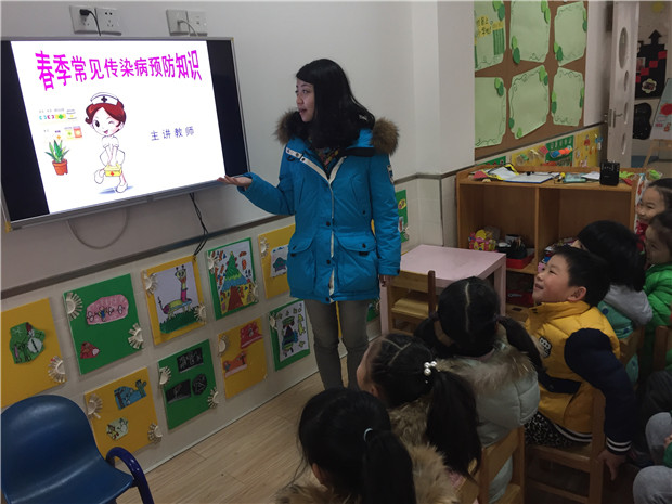 由保健虞老师组织全体教职工学习了有关幼儿园春季传染病防控工作,使全体教职工提高对春季传染病的知识理解,做好对幼儿相关预防防范工作。由各班老师向幼儿详细地介绍了一些春季传染病的发病特点、主要症状、传染源、传播方式和各种预防措施,如:红眼病、手足口病、流感、水痘、麻疹等疾病。其次,加强晨午检,落实“早发现、早隔离、早报告”制度,做好缺勤跟踪登记工作,同时合理组织幼儿在园一日活动,教育幼儿讲究卫生,饭前便后勤洗手,养成良好的个人卫生习惯。鼓励幼儿要早起、勤锻炼,增强体质,提高机体免疫力。认真落实“每日清扫、定期消毒、经常通风”工作。