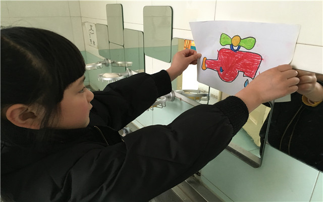 教师亲身示范教给幼儿科学洗手六步骤,还根据幼儿的年龄特点,将六步洗手法加入儿歌和歌曲中,如“小朋友,来洗手。卷起袖,淋湿手。抹上肥皂搓呀搓,清清水里冲一冲,再用毛巾擦一擦,我的小手真干净。”、“搓搓搓,搓手心,搓搓搓,搓手背,搓搓搓,手指缝。冲冲冲,冲干净,关上龙头甩三甩,一二三,真干净!”其次,老师还请小朋友制作步骤图自己贴在洗手池上方,时刻提醒自己。