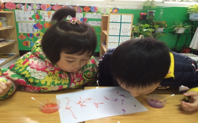 近阶段,我班通过多种有趣的的形式如添画、粘贴画、吹画、印画等,引导幼儿感受美、表现美。其中,玩色游戏深受孩子们的喜欢,在一次次尝试中,孩子们都忍不住发出惊叹,“真好玩啊!”忍不住跃跃欲试,亮晶晶的眼睛里流露出惊喜和期待。