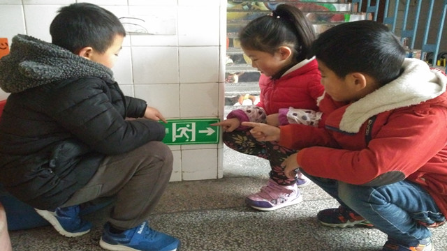 “你拍一,我拍一,生命安全数第一,你拍二,我拍二,学习消防在一块儿……”活动伴随着朗朗上口的消防安全儿歌拉开序幕。活动的开始,老师给幼儿观看了“火灾现场”的视频片段,让孩子们在身临其境的氛围中感知火灾给人们带来的危害,引导幼儿思考如何应对火灾。接着,在了解了消防安全标志的基础上,老师们给孩子们提供了湿毛巾,带领幼儿学习在火灾中正确使用湿毛巾逃生的方法,并且教孩子们如何正确使用灭火器,孩子们个个都学得很认真。最后,老师还带领孩子们来到走廊、楼梯口找一找幼儿园里的消防安全标志和灭火器,进一步促使幼儿将消防安全知识和逃生方案牢记于心。