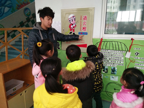 活动中老师通过观看图片、讲安全新闻、认识消防器材、学习幼儿园安全标志等生动活泼的形式,给孩子们上了一堂消防常识课,