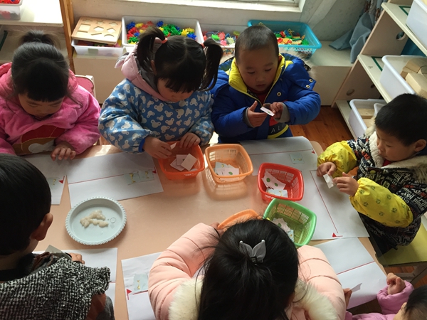 在活动中教师没有向幼儿传授一一对应的方法,而是让幼儿自己去发现,自己去探究,这有利于幼儿认知结构的发展,有利于他们以后对数概念的理解。如:在让幼儿喂小鸡时,教师没有演示操作方法,只是告诉他们:一只小鸡喂一条小虫。孩子们明白要求后,自然地运用一一对应的方法进行了操作。