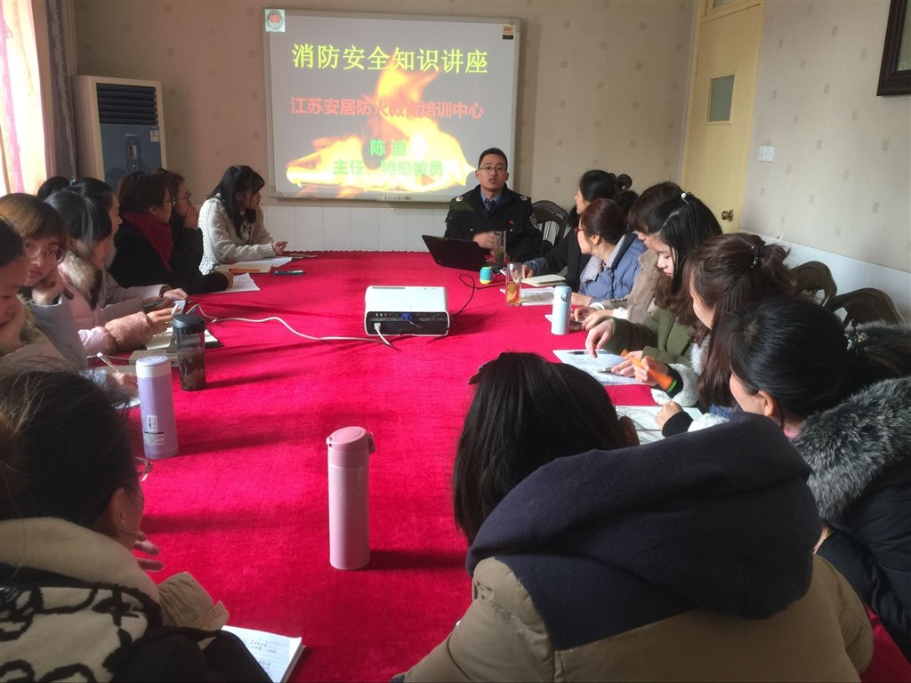 红梅中心幼儿园始终把安全工作放在首位,高度重视校园和班级的消防安全管理,全力为幼儿创造一个安全的学习环境。为进一步加强全体教师消防安全意识,全力普及消防安全知识,推进校园消防安全宣传工作,2017年02月24日中午,我园邀请了江苏安居防火教育培训中心主任、特级教员陈波警官,为幼儿园全体教职工上了一堂生动的消防知识培训讲座。
