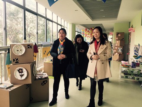 然后又查看了公共区域环境和班级活动环境,在“课程游戏化”教育背景下,我园整体环境以幼儿为本,处处彰显特色与互动。吴处对我园教师辛勤的付出和智慧的共享给予了充分的肯定和认可。