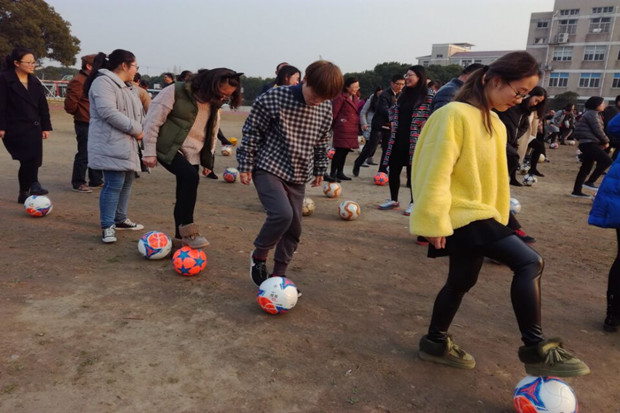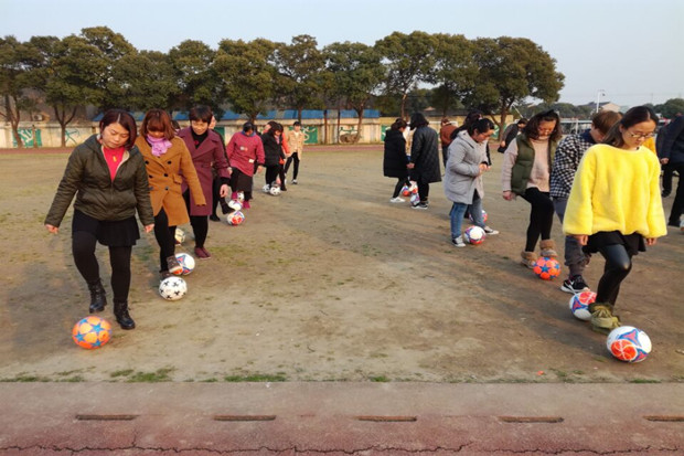 整个活动以游戏的形式玩足球,在愉悦的氛围中,老师们认真地学着,开心地玩着。(撰稿:张静)