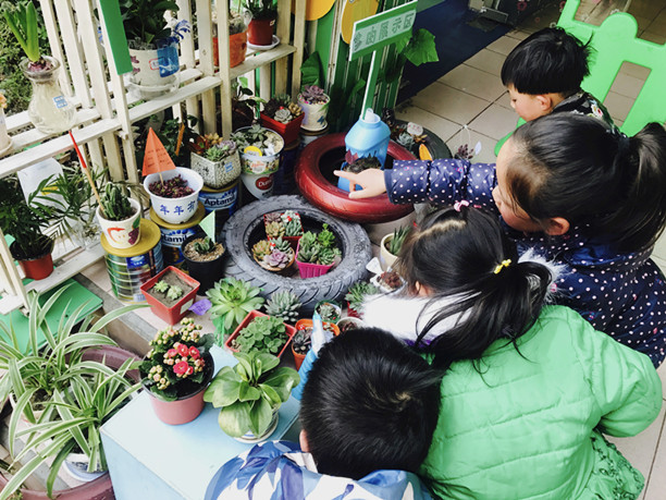 “老师,老师,这些多肉植物好像生小宝宝了呢!”“老师,这里的花朵开得越来越多了,真漂亮!”稚嫩的声音,童真的话语,句句流露出了孩子们对植物角的关注和喜爱。这正是近段时间,茶山中心幼儿园各班植物角里发生的场景。