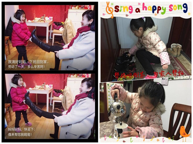 晨间活动时,老师和孩子们聊起“我的好妈妈”,孩子们抱着感恩的心,说着自己能为妈妈、奶奶们做什么?捶背、倒水、提菜篮······孩子们的想法真多,为此,教师在班级群中建立“一件小事”专题相册,家长们将孩子做的一件小事拍照存档,上传到这个相册,供教师和其他家长纷纷点赞,为孩子们的行为点赞,为孩子们的心意点赞,为孩子们的感恩点赞。