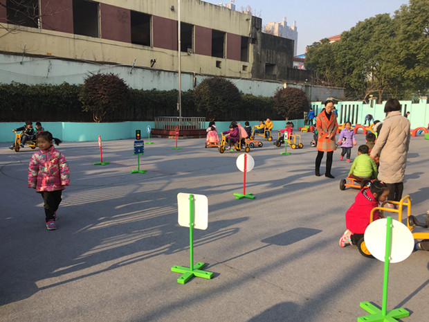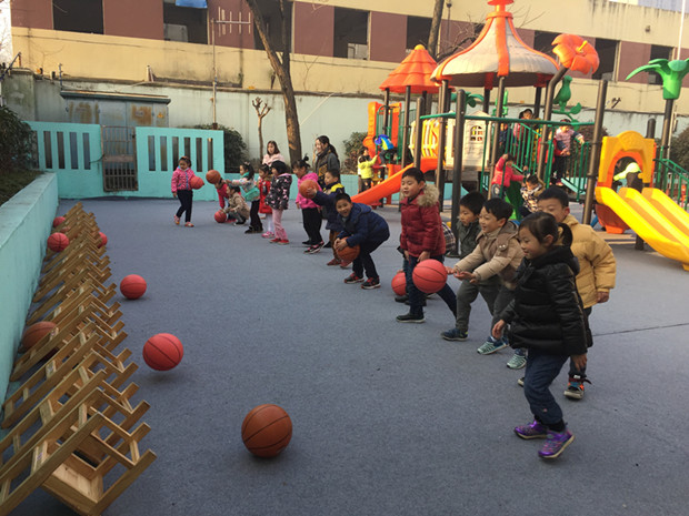快乐的一天就这样在趣味的运动中开始了,孩子们时而钻、时而跳、时而踩高跷,玩得不亦乐乎。教师们对活动进行科学合理的组织与调控,使孩子们得到了积极有效的锻炼。这种开放式的锻炼,让孩子们不再局限在规定的一方小天地,不再在老师的指挥棒下运动,他们可以玩到更多的器具,真正做晨间锻炼的主人。幼儿园的早晨呈现出健康、活泼、向上的氛围。
