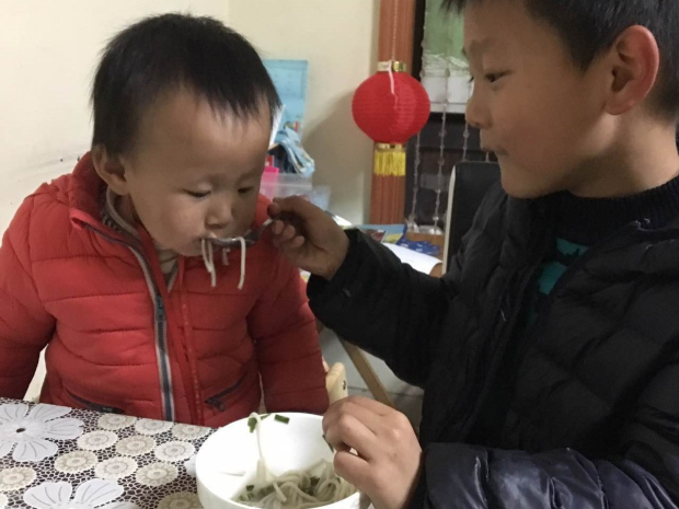 小厨房里出现了一群系着围裙、带着帽子的小小服务生,他们为弟弟妹妹准备了诱人可口的食物。弟弟妹妹来啦!哥哥姐姐们有的为弟弟妹妹做好吃的;有的带着弟弟妹妹来到座位旁;有的则在关切地询问弟弟妹妹食物是否可口。而手工坊里,哥哥姐姐们为弟弟妹妹做起了小礼物,拿到礼物的弟弟妹妹们别提有多高兴了,小脸蛋儿上就露出了灿烂的笑容。建构区里的哥哥姐姐们帮助弟弟妹妹建构出了一座座房子,一条条马路。