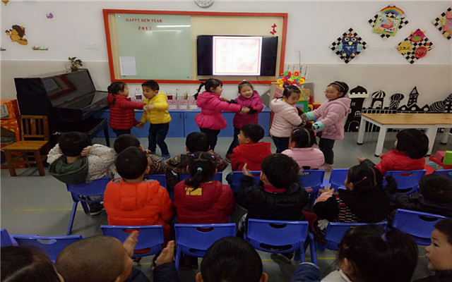近日,实幼开展了一场“常州话说童谣”的活动。活动前期,家长们通过班级群老师发的儿歌录音及文本了解学习的内容。在教室里,保育员阿姨用地地道道的常州话为全班小朋友表演,小朋友跟着阿姨一起学起了“虫虫飞,抖抖虫虫飞,飞到高高山上吃白米”。老师们用动作配童谣,列如“摇啊摇,摇到外婆桥”生动形象的表演吸引着孩子们,更是促进了地方文化的传承。