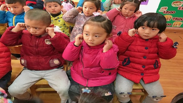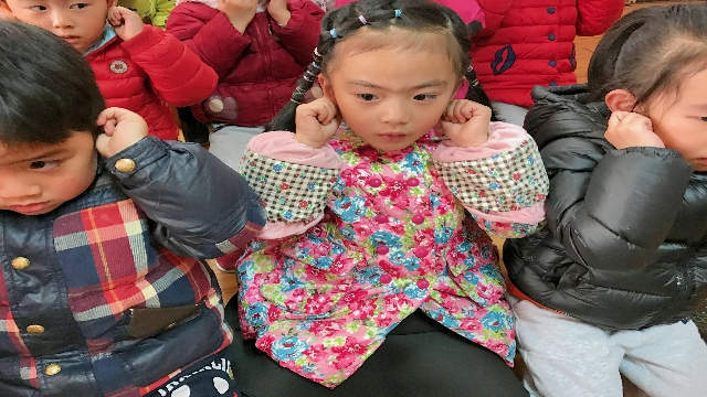 活动中,小朋友掌握了不少爱耳常识,如不要去噪音太大的地方;和伙伴轻柔地交流;洗澡的时候,水要进到耳朵里就拍拍这个耳朵;发烧感冒了及时到医院就诊,防止引发急性中耳炎;不用尖的东西抠耳朵;不能把一些小物件塞到耳朵里,如果有东西塞到耳朵里,就赶紧送医院找医生处理等等。最后,孩子们在老师的带领下,一起学做快乐的耳朵保护操。