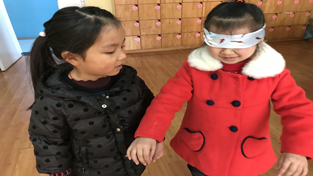 活动中,大家一起玩“盲人走路”和“摸人”的游戏,使孩子们亲身体验到眼睛看不见时会给人们带来许多的困扰和不便。然后,在老师带领下小朋友们进行了“爱眼”小讨论。通过讨论使孩子们深刻的认识到眼睛的重要性以及如何保护我们的双眼。如不能用脏手碰眼睛、看电视时要保持一定的距离且不能看的时间太长、看图画书时要保持正确的坐姿等等,最后,老师与孩子们还一起学习了“眼保健操”,增强幼儿保护视力,预防近视的意识。