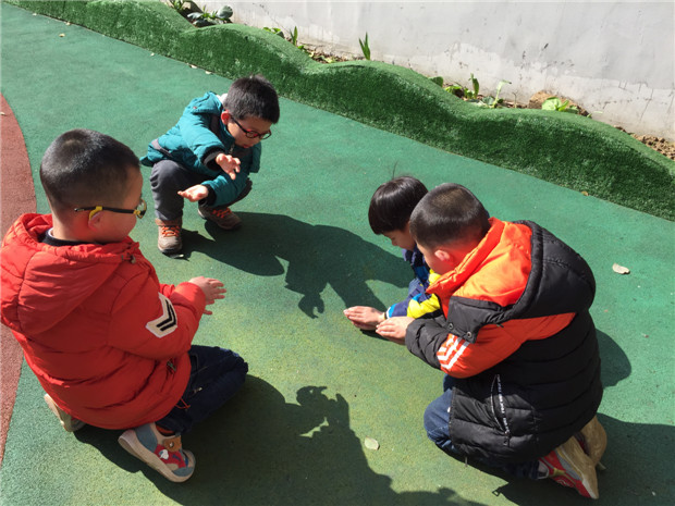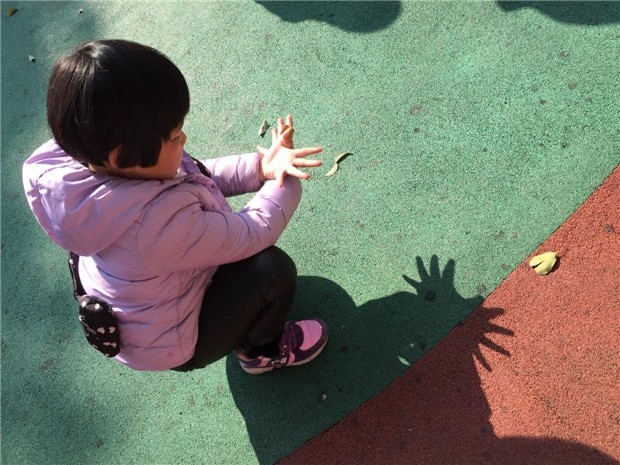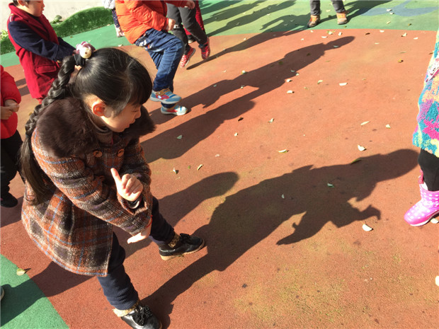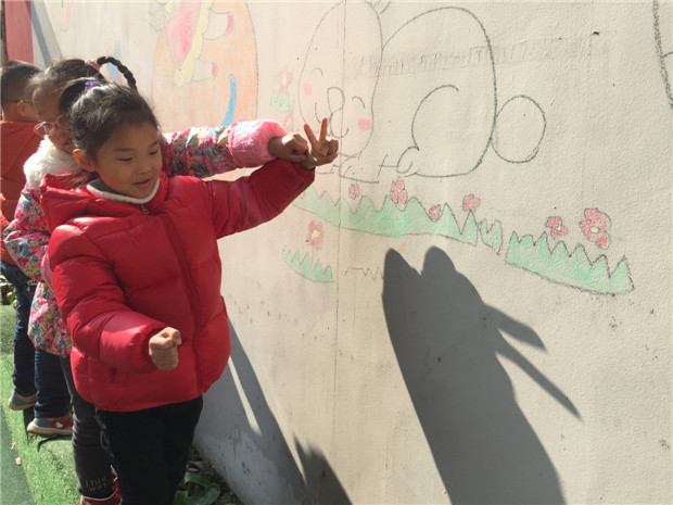 当看到我用投影仪在墙上变出孔雀、小狗、鹅、苹果、螃蟹、啄木鸟、猫头鹰、小刺猬、鹦鹉、牛等的手形时,孩子们好兴奋啊,都争先恐后的学习手影动作,自己的一双小手扭来扭去,老师通过手影变化,引导幼儿去发现自己的小手真神奇,一会儿变兔子、一会儿变小狗,还会变大狼……孩子们玩得津津有味、乐此不疲。 最激动人心的时刻就是走到户外,在阳光下用自己的小手进行实践,孩子们的想象力很丰富,一双双小手就这么变一变,小兔子、小蛇、小猫、小鸟这些可爱的小动物就一个个活了起来,有几个孩子还提议几人一组用手影去组合一些比较有难度的造型,比如:小汽车、豹子、啄木鸟等。手影游戏活动是从幼儿兴趣出发,通过多变的手影,发展幼儿的观察力、想象力、创造力及口语表达能力,同时还培养了孩子手部肌肉、关节的灵活性、协调性。