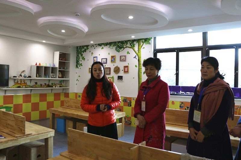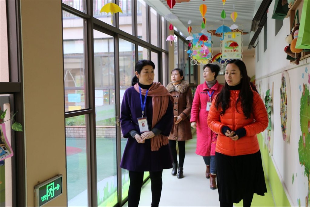 责任督学们在承园长的陪同下先实地查看了幼儿园的室内外环境创设和班级常规的教学活动。
