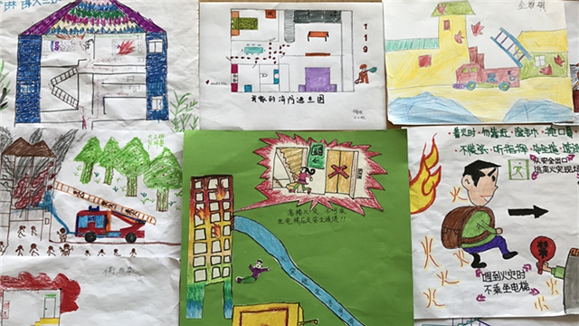 围绕“高楼火灾逃生”的话题,大班幼儿与家长们通过网路搜索、翻阅书籍、大讨论等方式,制作了一幅幅生动形象的图画,其中有许多高层建筑火灾逃生常识,如:高楼失火千万不可惊慌失措,抓住有利时机,选择合理的逃生路线和方法,争分夺秒地逃离十分危险的火灾现场;逃生时勿入电梯,不可盲目跳楼,学会使用求救信号等。这些图画图文并茂,事例典型,贴近孩子们的日常生活,以积极预防为主,以有效应对为核心,鲜明生动地向幼儿展示了安全的重要性,帮助和引导幼儿了解保护自身安全和维护公共安全的基本知识和技能,树立和强化了安全意识。