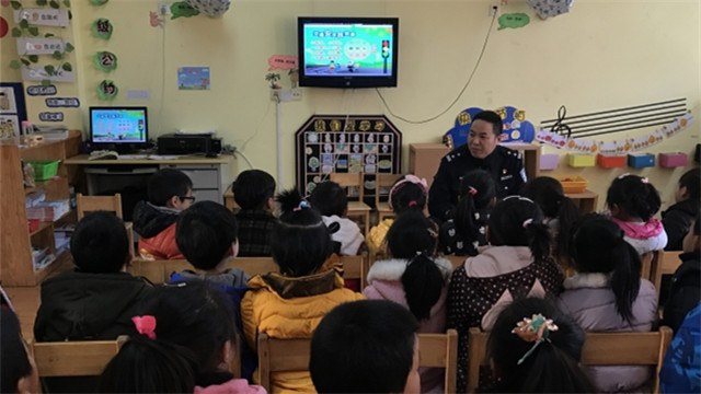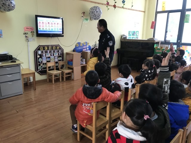 为了增强孩子的交通安全知识,提高幼儿在日常生活中的安全意识,今天上午,彩虹幼儿园大三班开展了“警察叔叔进课堂”活动。活动中警察叔叔给孩子们讲解了各种交通信号标志的含义、车辆在道路上行驶时应遵守的交通规则等,并通过通俗易懂的语言、简单有趣的动作示范、提问式的抢答等互动形式来普及最基本的交通安全知识。整个活动中,孩子们笑声不断、回答问题积极踊跃。