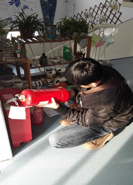 一、消防设施方面。3月2日上午,安全小组成员对全园的灭火器逐层逐个进行了仔细的检查。重点检查灭火器的生产日期、维修日期,看是否在保质期内;压力表的指针是否指在绿区(绿区为设计工作压力值);筒体、连接部位、筒底有无严重变形、锈蚀;压力表的外表面、灭火器的压把、阀体、喷嘴等金属件有无严重损伤、变形、锈蚀,影响使用。