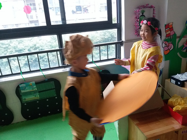 戏剧表演游戏为孩子创设了一个自主化的情境。在戏剧表演游戏中,由于幼儿可以自主选择表演的故事、担任的角色、装扮的方式以及表演的方式,所以幼儿的玩伴多了、可参与的角色多了、内容丰富了,在一定程度上扩大了幼儿学习的范畴。