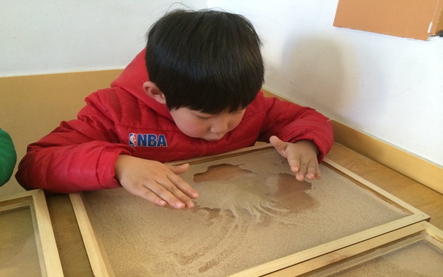 爱玩沙是孩子的天性,沙画可以促进左右脑智力开发和协调。近日,中二班小朋友们就在钱老师的带领下第一次走进了沙画。