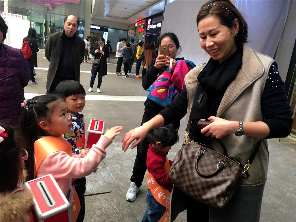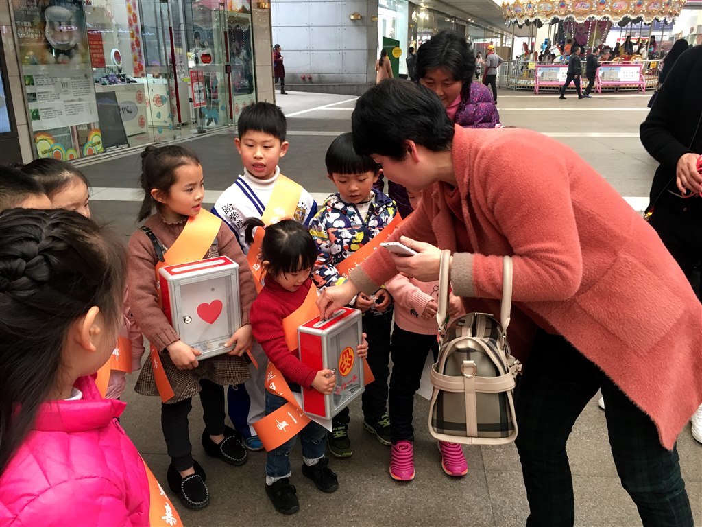 下午14:00活动正式开始,风车娃们在路上随机选择路人,爷爷奶奶、叔叔阿姨为他们进行表演,并向他们募集善款,捐款金额直接投入善款箱。每募集一份善款,小朋友将向募捐者粘贴一枚“日行一善”的荣誉徽章。“哥哥姐姐,我们是大风车幼儿园的小志愿者”“阿姨,我们为您表演个节目,请您和我们一起帮帮家境困难的小伙伴”“谢谢姐姐,给你帖一枚荣誉勋章噢”……