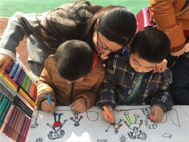 孩子们趴在画布上安静地作画。站在一旁的家长也积极地参与到了活动当中,有的妈妈当起了绘画模特,有的爸爸当起了艺术指导……孩子们认真地画出妈妈的轮廓,再画出妈妈的五官、头发,有的孩子还给“妈妈”穿上了漂亮的裙子,背上漂亮的包包;有的“妈妈”站在一片广袤无垠的草原上,有的“妈妈”则站在五颜六色的花丛中……蓝天白云,鸟语花香,每一个“妈妈”都被孩子们画得栩栩如生。画好之后,孩子们拿着画好的画像,对自己的妈妈深情地说“妈妈我爱你”、“妈妈节日快乐”、“我永远爱您”等话语表达自己对妈妈无尽的爱,妈妈们的脸上也洋溢着灿烂的笑容。