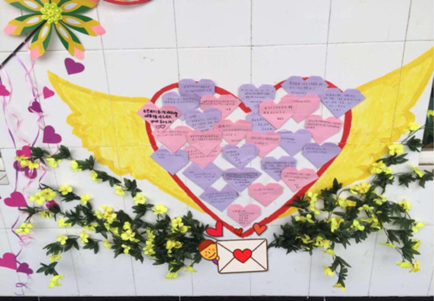 活动二:“爱的寄语”,妈妈们为孩子写下爱的寄语,一起贴到“爱心墙”上,让爱插上翅膀,构建起心与心的桥梁。