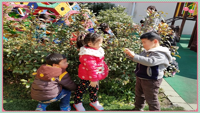 春天,微风拂面,小朋友们乐在其中,嬉闹声源源不断。活动中,孩子们细心的观察着四周的环境,发现幼儿园两旁的树木长出了嫩绿的叶芽芽,小草从泥土里钻了出来,草地变得绿油油的;还看到了有的小树、小草都长出了嫩芽,一些小花也开了;还发现了许多不知名的植物都长出了新叶。下课之余,孩子们走进自然角,发现饲养区中的乌龟经过一个冬天的冬眠之后,已经渐然苏醒了;看到大自然发生这些惊奇的变化,孩子们非常兴奋,纷纷说着自己发现的春天的“秘密”。