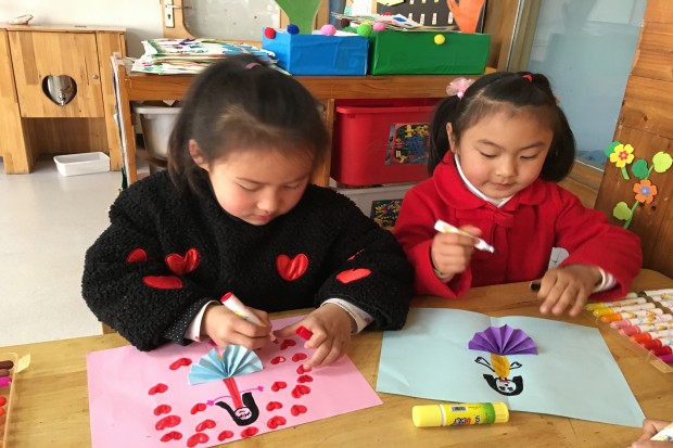 首先,节日在老师的细心解读中拉开帷幕,孩子们不同程度的了解到“三八妇女节”历史和由来,通过视频欣赏、图片观察、讲述讨论,让孩子领会妈妈在日常生活中对自己、对家庭所付出的爱与艰辛。小朋友以“一颗感恩的心”为出发点,在节日里为妈妈做一件有意义的事,如:一个香香的吻、一个大大的拥抱、一句关心的话、一杯暖心的茶……孩子们在老师的指导下,一张张生动的、可爱的、有着浓浓爱意的卡片呈现在大家眼前,每位孩子都积极的参与活动,用自己手中的作品体现出对妈妈的喜爱和敬佩之情。