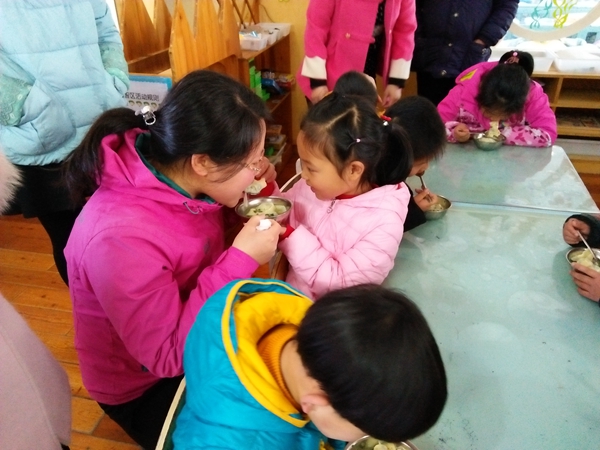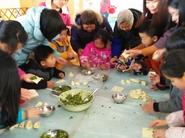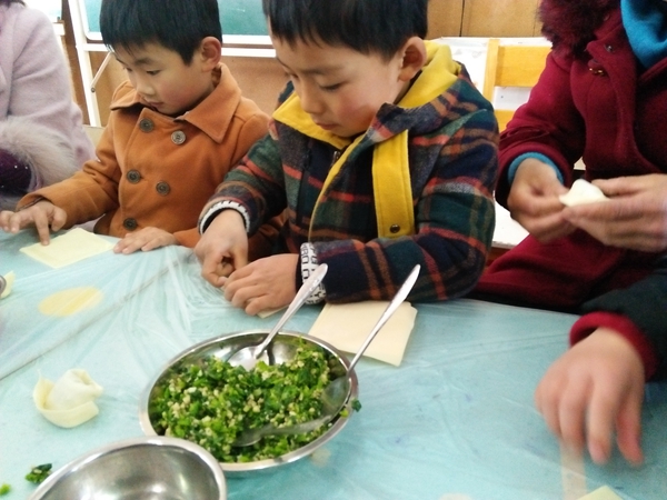 在活动中,妈妈们和宝宝们一起包起了亲子馄饨。“妈妈,我来放馄饨馅,你来包裹”“妈妈,让我自己来试一试”“嗯,宝宝真能干”……教室里都是这样温馨的交流,亲子搭配亲密无间。