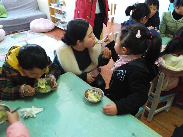 “妈妈,你先来尝一下吧”馄饨烧好后,孩子们都把宝贵的第一口放到了妈妈的嘴里。孩子们包裹的馄饨虽然有些粗糙,但里面却是浓浓的亲子之爱。吃着孩子们包裹的馄饨,妈妈们脸上都洋溢着幸福的笑容。
